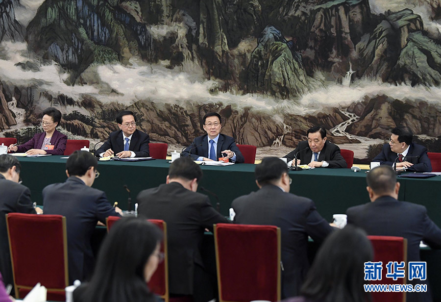3月7日,中共中央政治局常委、国务院副总理韩正参加十三届全国人大二次会议浙江代表团的审议。 新华社记者 高洁 摄