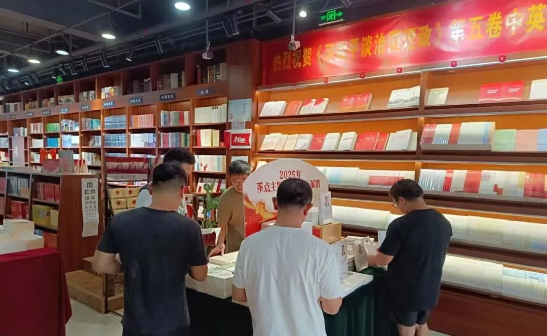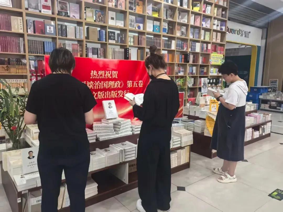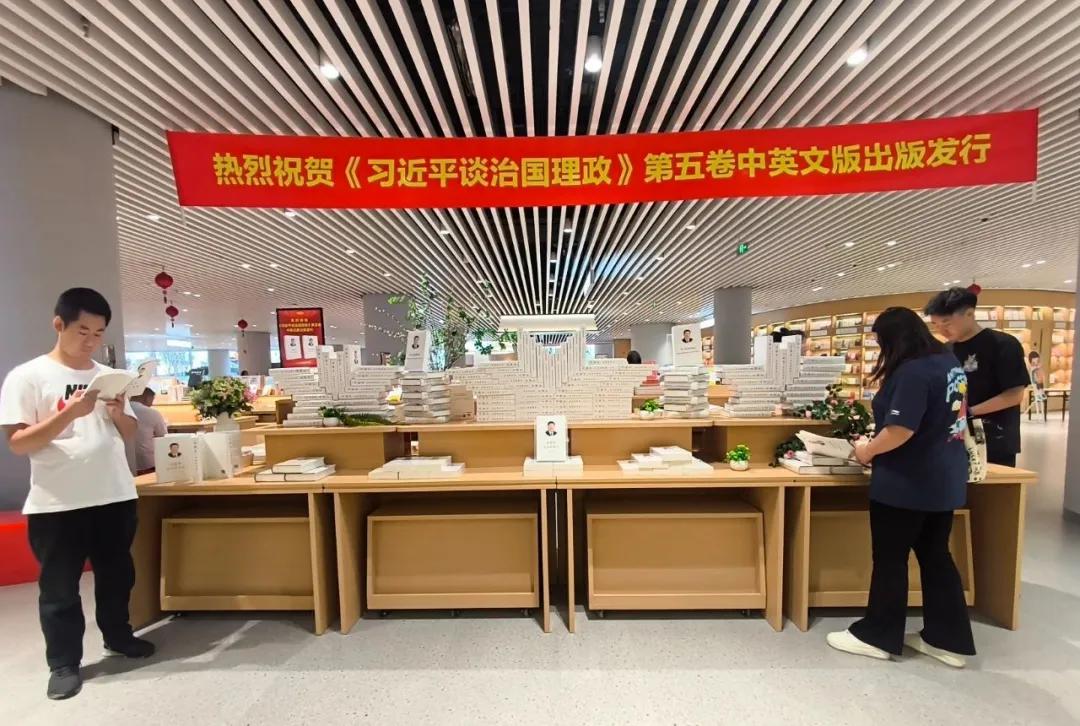 以下为《习近平谈治国理政》第五卷中英文版图书在黑龙江、吉林、辽宁、内蒙古、陕西、甘肃、宁夏、青海主要书店上架销售及读者阅读的场面。